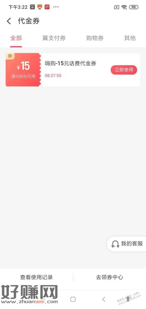部分翼支付送了15话费券