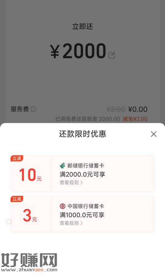 支付宝信用卡邮储还款满2000-10元,今天最后一天,活动期