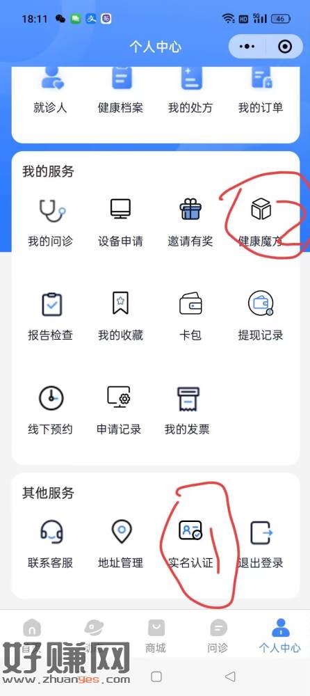 登录,点个人中心下拉找到认证的地方简单填写完成认证,获得10健康金。