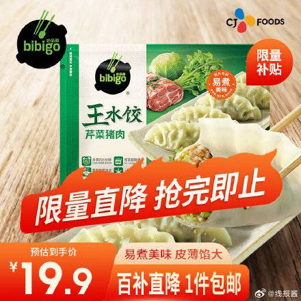 19.9,必品阁王水饺 芹菜猪肉 约48只