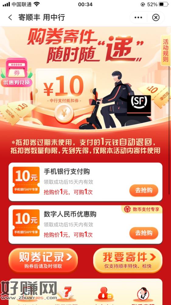 更新中国银行老毛 生活 下拉 顺丰数笔2次 银行卡支付一次