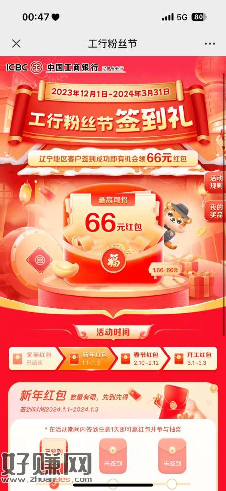 辽宁工行!签到然后抽奖!立减金. 基本一号2包立减.