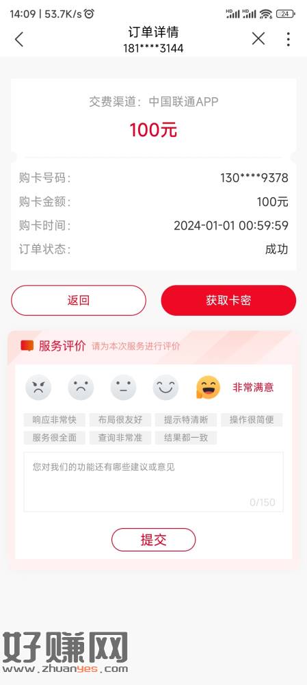 2.切换联通号码购买100面值充值卡,可叠加9.5折和88-6,大概85~88购买100充值卡