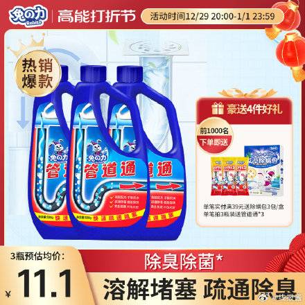 立减 8.9亓到手 ,兔力管道疏通剂一瓶500g,