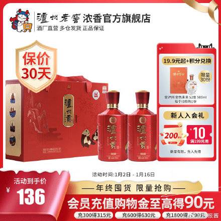 抵扣金币后87亓, ,泸州老窖合家欢500ml*2瓶礼盒!