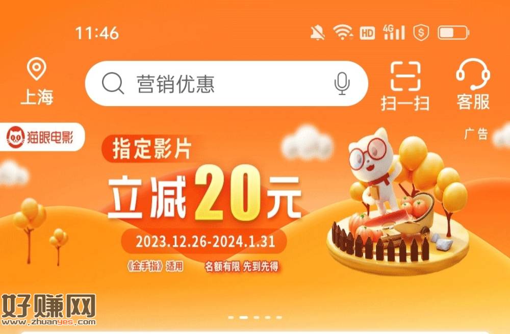 中行下单,电影金手指立减20,接单有10润!毛慌的上,麻花,哈哈可以接单!
