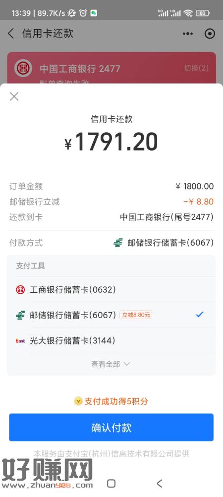 邮储 支付宝信用卡还款1800-8.8 陕西卡 自测