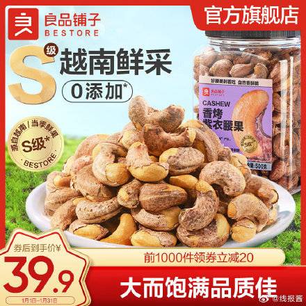 先领39-5元 ,32.9元,良品铺子香烤紫衣腰果500g