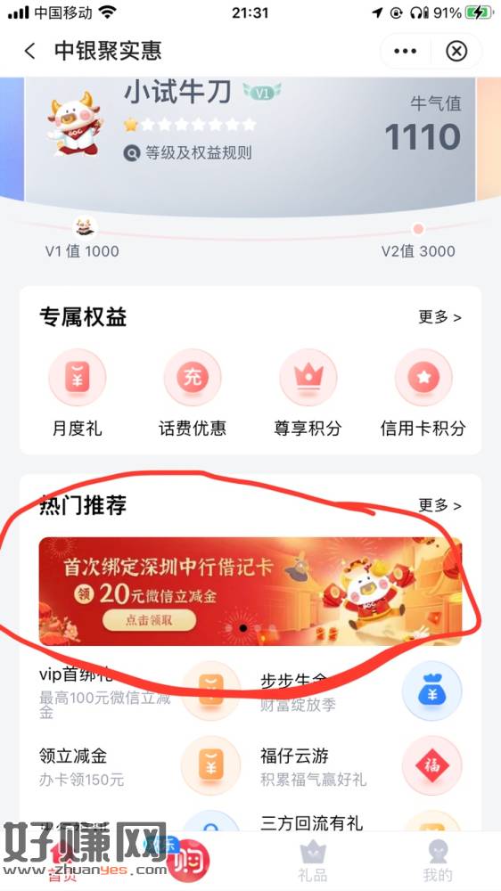 中信周三会员日有水喜中霸王茶姬20元代金券