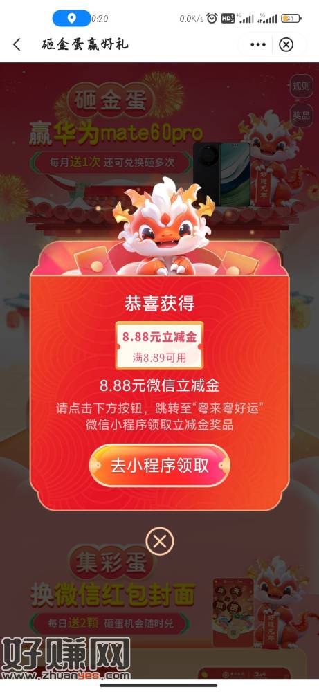 广东中行砸金蛋,每天领两个彩蛋,五天可以换一次机会,没玩的现