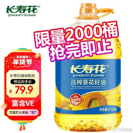 百亿补贴限量79.9亓 ,长寿花压榨葵花籽油 6.18L