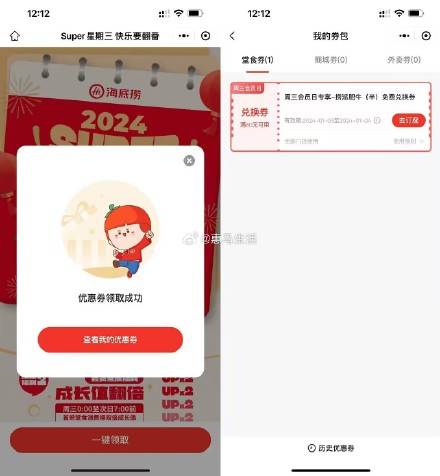 【海底捞周三领半份肥牛兑换券】微信打开地址扫码->直接领取即可->刚好要吃海底捞的可以去领一手