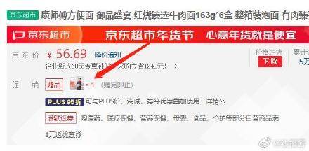 康师傅方便面 御品盛宴 红烧臻选牛肉面163g*6盒 plus叠加礼金到手31.8,赠品家政 https://u.jd.com/JbVOK7L https://u.jd.com/J8VQbep限北京/深圳/广州/上海 其他地区联系客服换3000京豆=30