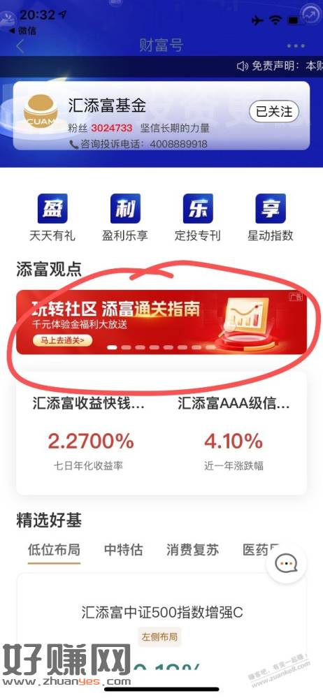 汇添富基金,滚轮玩转社区,三个抽奖,中2个体验金,最后一个抽奖取消关注再关注就可以抽