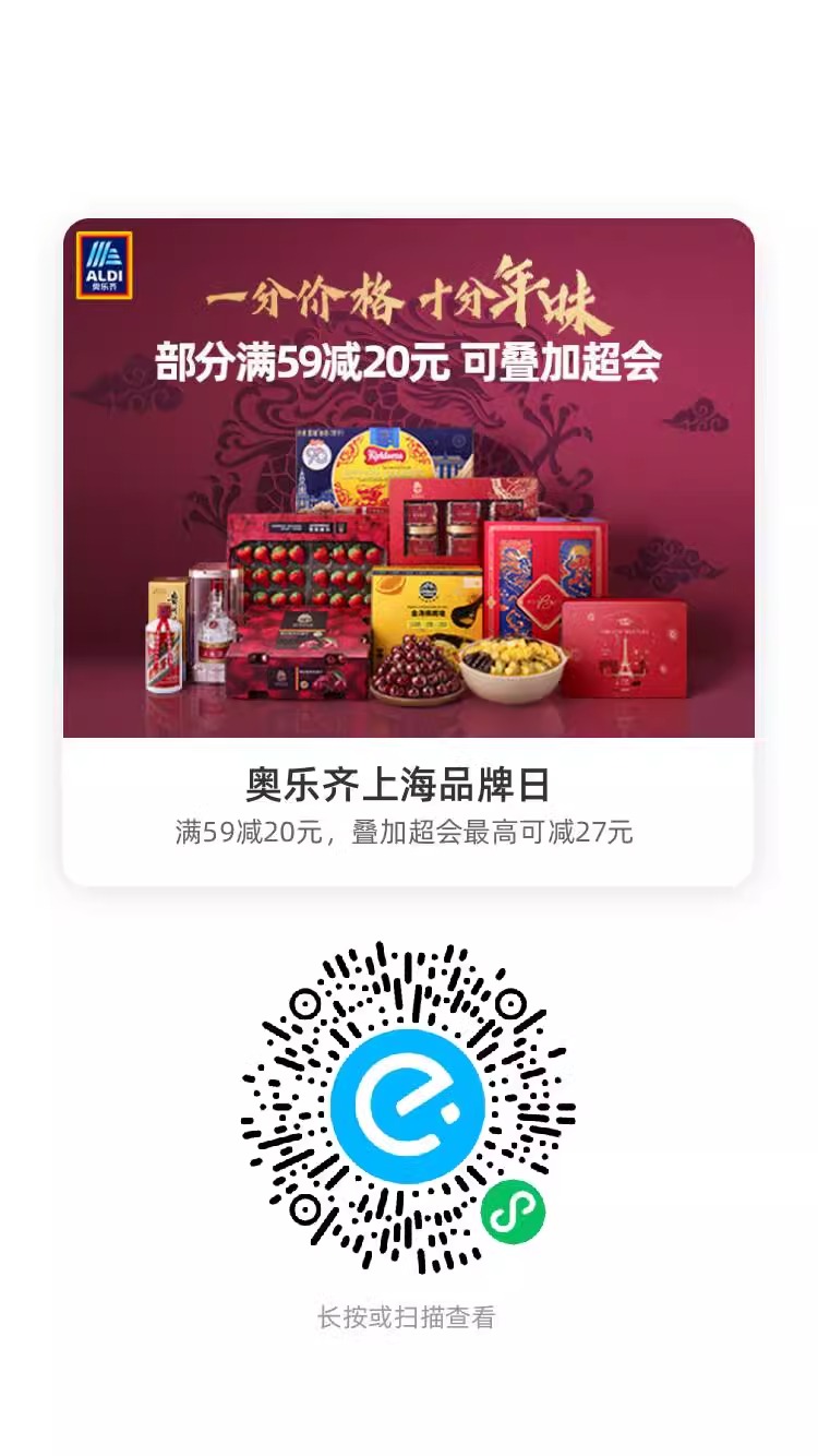 上海地区,饿了么奥乐齐有59-20叠加会员可以59