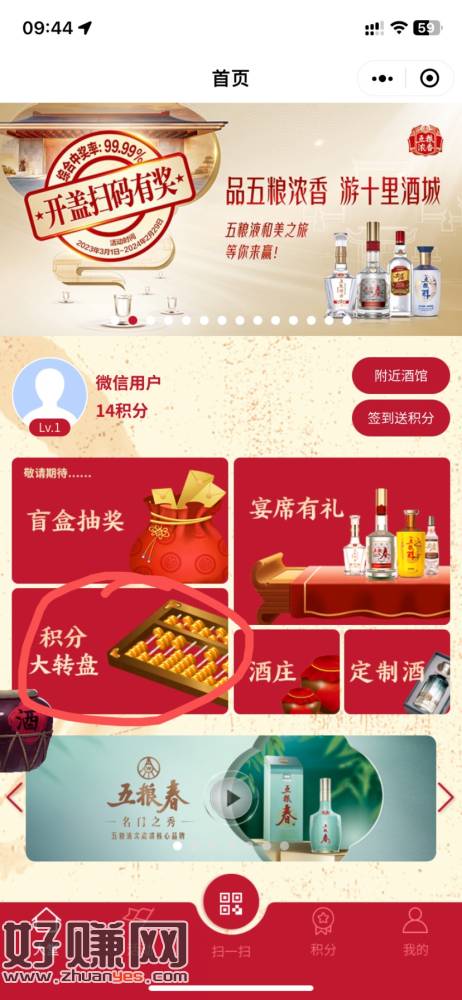 五粮液那个 主页还有个大转盘可以抽 要有积分2-2