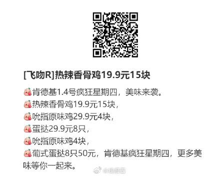 今日肯德基疯狂星期四,扫码点餐再便宜几毛钱