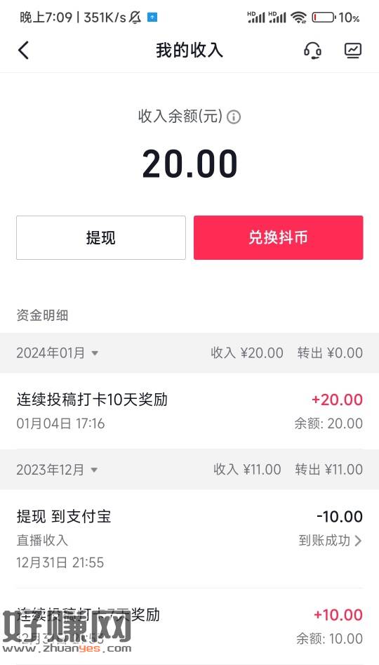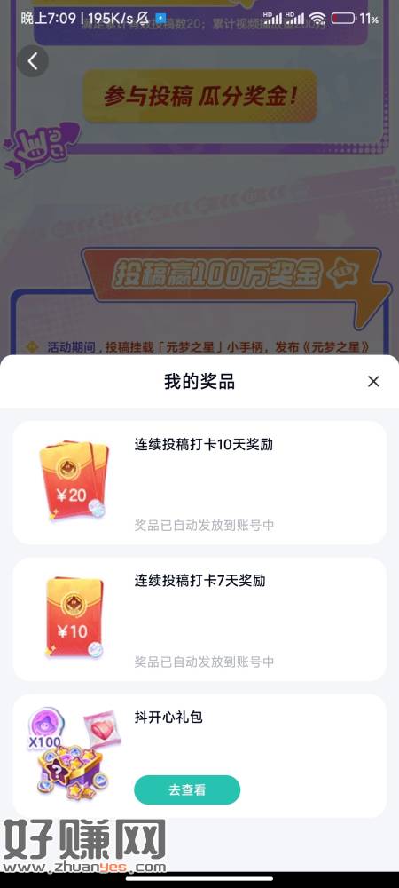 抖音之前发作品元梦之星,一天一次的,7天10,10天20到账了