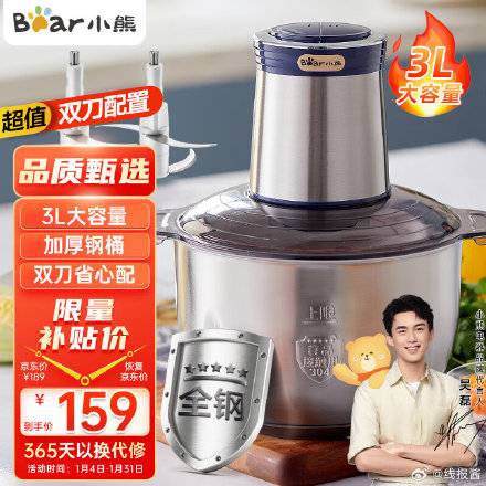 89元,小熊 全钢机身绞肉机 3L