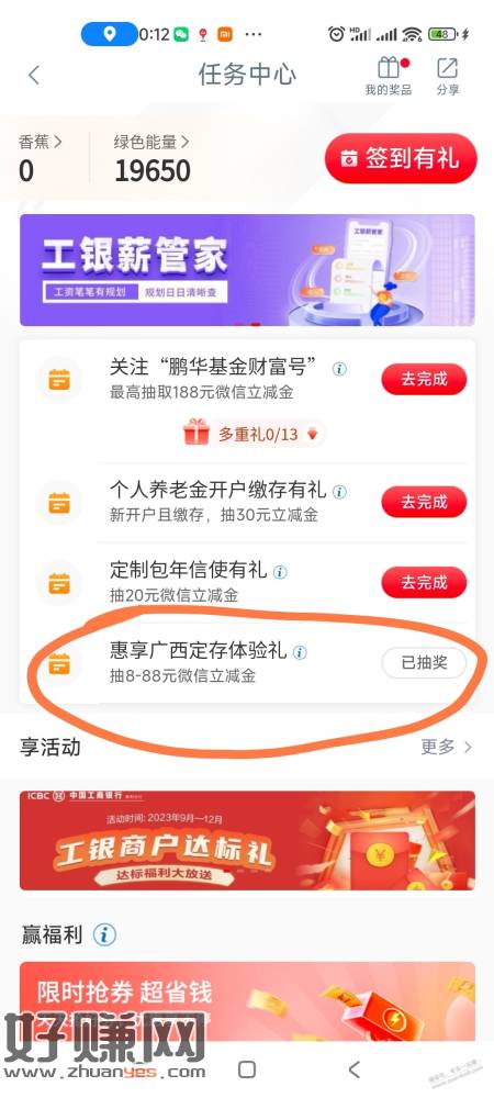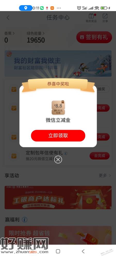 任务中心,定期50元,抽奖最少8.8,然后支取。
