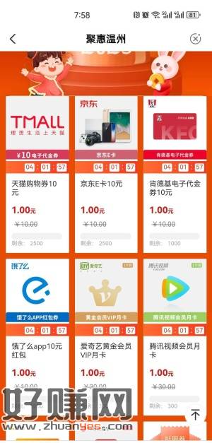 农行温州192000城市专区聚惠温州,九宫格好礼1元秒杀