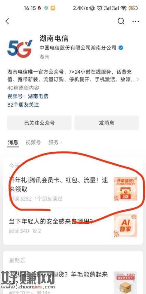 湖南电信公众号推文,开年礼岁末狂欢惊喜开年