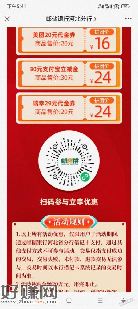浦发银行储蓄卡微信支付宝 支付达标抽红包