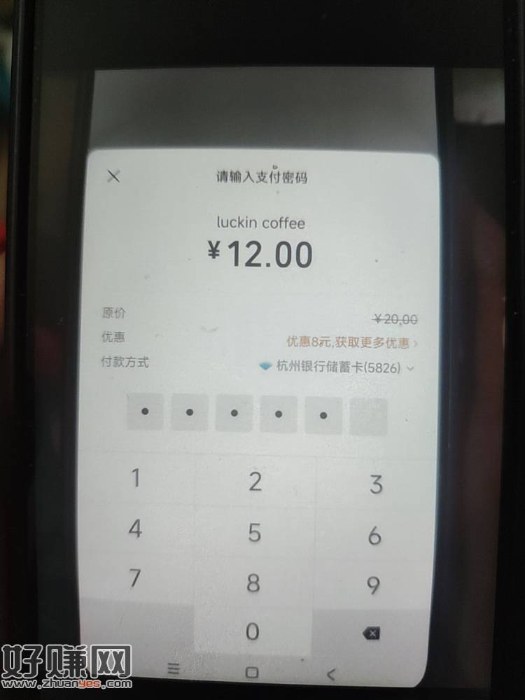 微信买瑞幸礼品卡,用杭州银行卡支付20-8