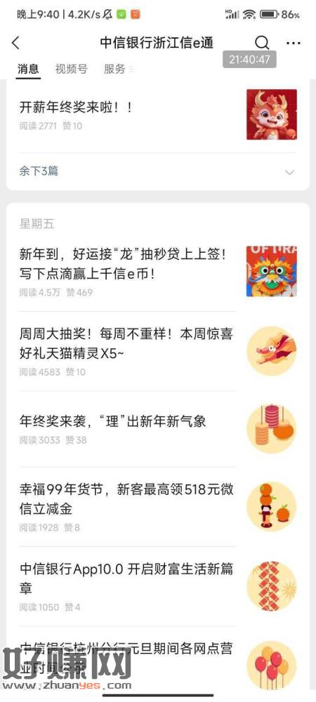 中信浙江信e通公众号推文,幸福99年货节活动抽奖