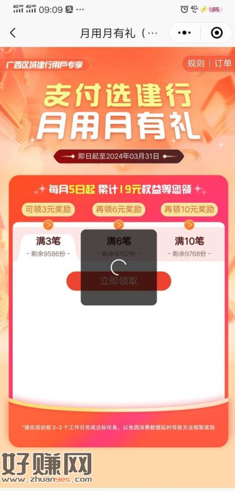 建行广西约惠八桂月月有金喜+月用月有礼+新客初建有礼