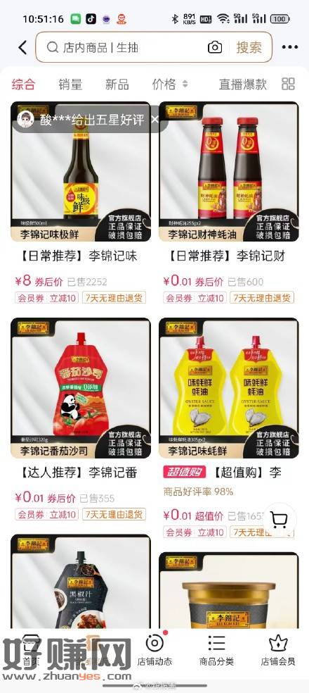 dy扫码入会有10券,看不见不入,店铺价格排序,一堆一分钱