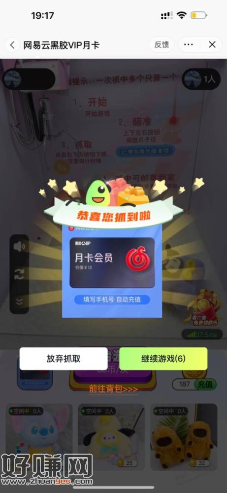 抖音抓娃娃 注册送30币 很多会员 实物娃娃感觉没必要 抓会员就行