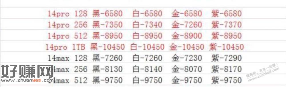 未激苹果14pro256黑-7370 银-7370 金-7340 紫-7370