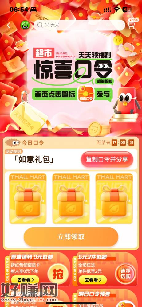 1.7天猫超市每日口令: