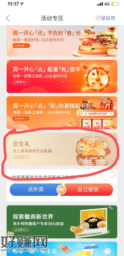 本月生日的。徽商银行 首页热门活动 庆生礼。