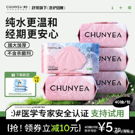 纯也湿厕纸40抽*3包,到手9.9元 ,拍倒数第二个选项