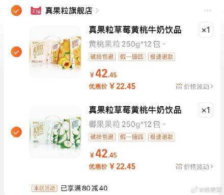 拍2件44.9 ,蒙牛 真果粒250g*12盒