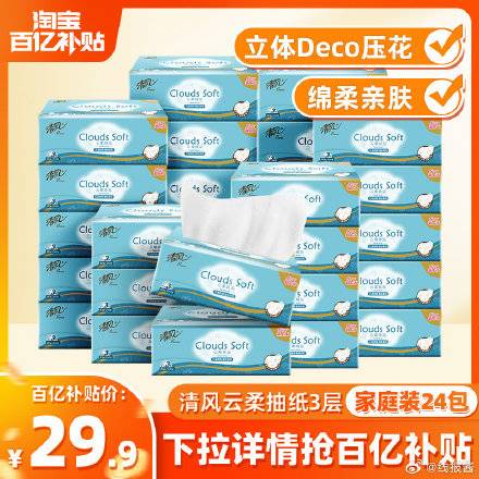百亿补贴,29.9亓, ,清风云柔压花抽纸24包整箱