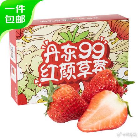 京鲜生 丹东99红颜草莓2.8斤 单果20-30g