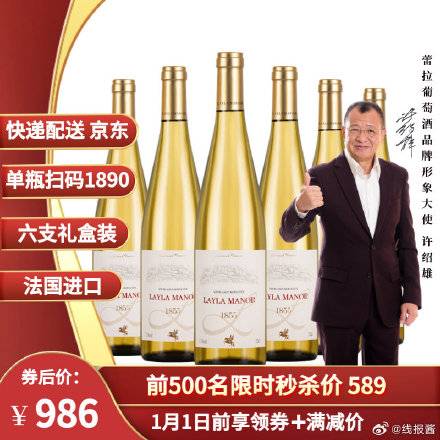 蕾拉进口甜白葡萄酒750ml*6瓶整箱,到手106