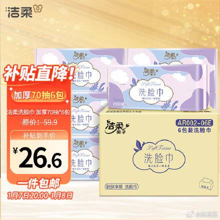 3件79.8,洁柔洗脸巾 加厚70抽*6包大规格