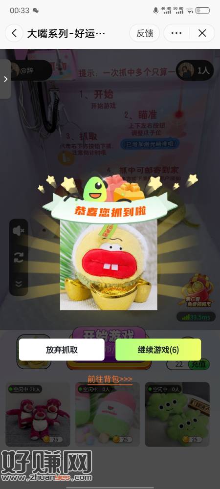 刚刚中抖音免费抓娃娃亲测绿钻和娃娃