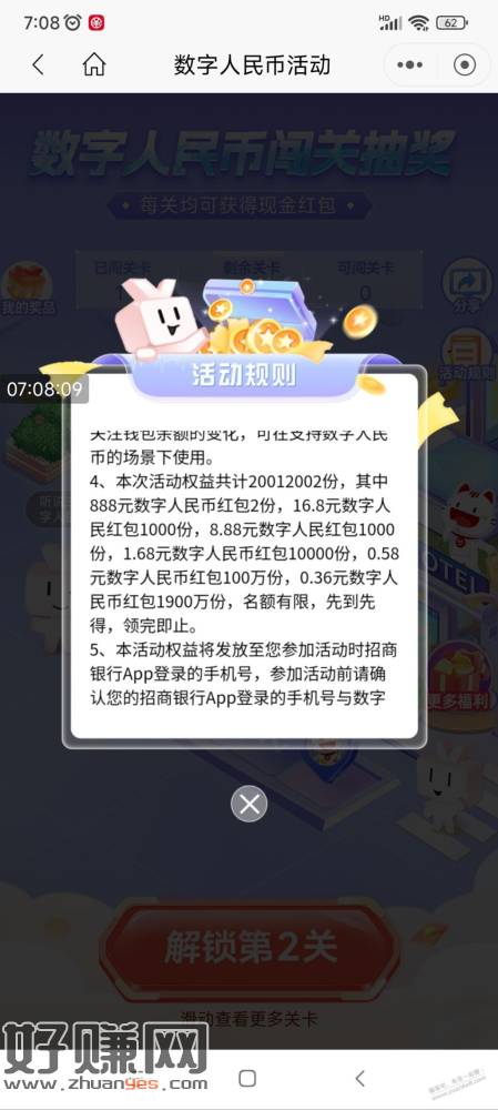 招商app搜数字人民币活动~支付返现~用数字人民币支付大于等于5元闯关一次(扫吧码),保底0.36,每天一次上限100次