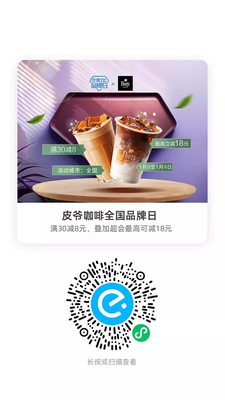 皮爷咖啡全国品牌日,有30-8叠加会员可以30-18