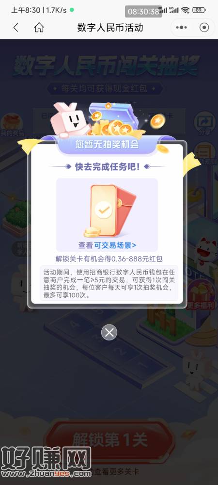 招行 每天数币消费5元可以领0.36数币 直接到账余额 一共100天合计36元 zfb还款或者湘行一卡通充值都可以无损做任务