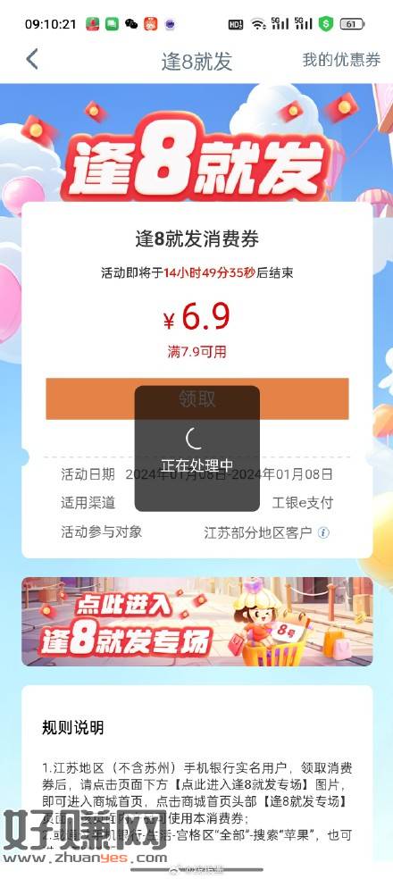 江苏地区除苏州,工行搜苹果,进去有一元牙膏抽纸等