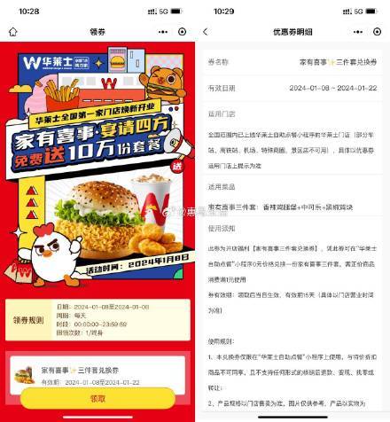 【华莱士免费领取三件套兑换券】微信打开地址->点图直接领取->券有效期15天,共限量10万份