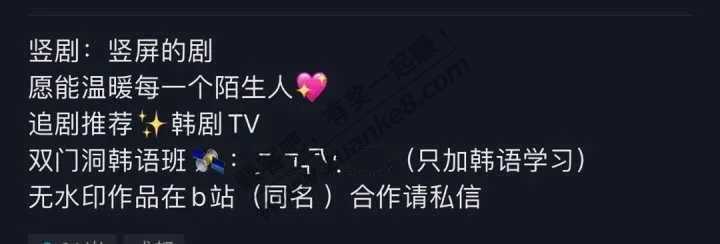 找到这个APP官方的合作微信之后,他们一般会把大家拉进一个群里,等你下次发视频的时候,在文案里艾特这个韩剧app账号。