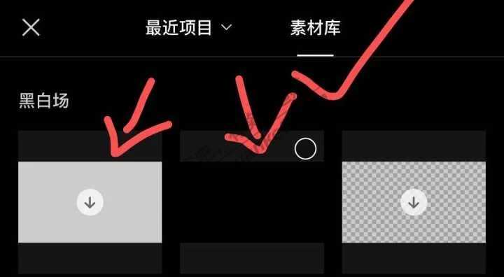 下载好之后,打开素材库,然后选择你想要黑色背景,还是白色背景,就是下图的黑白场。
