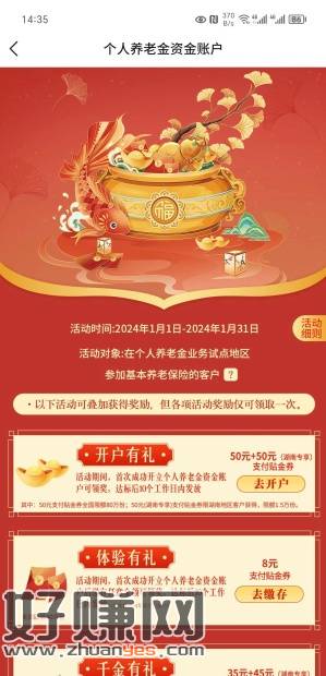 交通银行湖南个人养老金开户有礼,交通养老账户归属地开湖南地区可以领50+50 贴金券, 对比去年缩水了46, 没开过交通的可以去弄,羊毛寒冬的时候也算大毛了。比农行的50一次好一点。